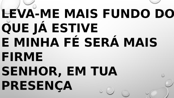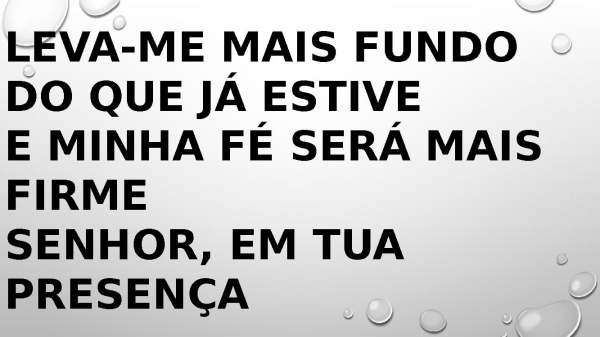 - Leva-me mais fundo do que já estive E minha fé será mais firme Senhor, em Tua presença