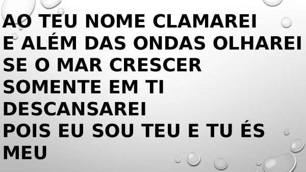 - Ao Teu Nome clamarei E além das ondas olharei Se o mar crescer Somente em Ti descansarei Pois eu sou Teu e Tu és meu