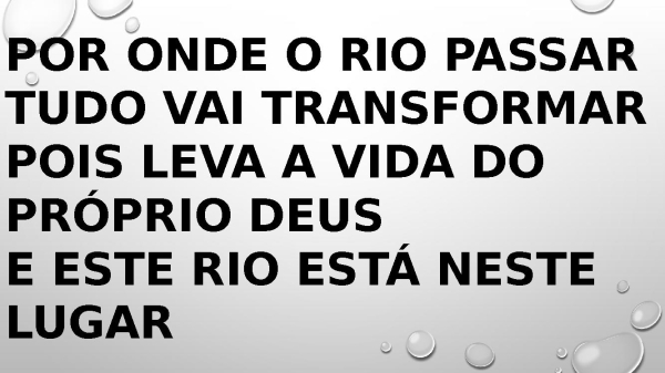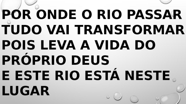 - Por onde o rio passar Tudo vai transformar Pois leva a vida do próprio Deus E este rio está neste lugar