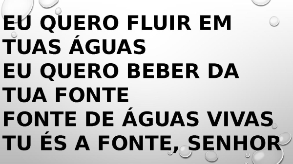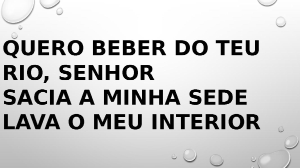 - Quero beber do Teu rio, Senhor Sacia a minha sede Lava o meu interior