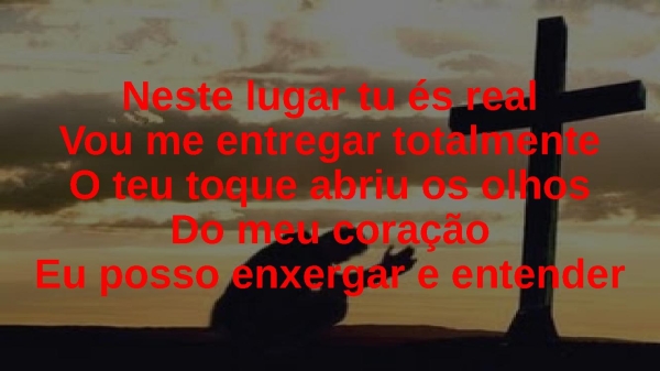 - Neste lugar tu és realVou me entregar totalmenteO teu toque abriu os olhosDo meu coraçãoEu posso enxergar e entender