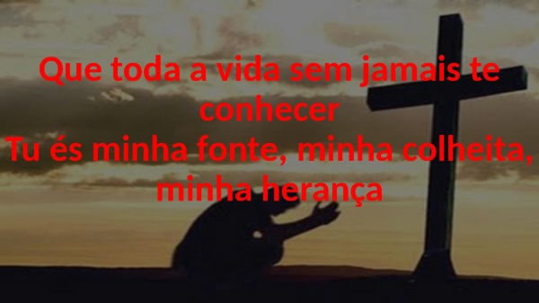 - Que toda a vida sem jamais te conhecerTu és minha fonte, minha colheita, minha herança