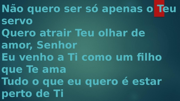 - Não quero ser só apenas o Teu servo Quero atrair Teu olhar de amor, Senhor Eu venho a Ti como um filho que Te ama Tudo o que eu quero é estar perto de Ti