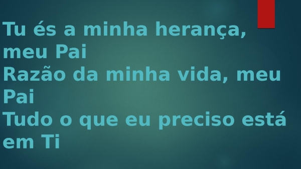 - Tu és a minha herança, meu Pai Razão da minha vida, meu Pai Tudo o que eu preciso está em Ti
