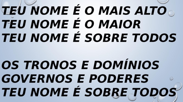 - Teu nome é o mais alto Teu nome é o maior Teu nome é sobre todos Os tronos e domínios Governos e poderes Teu nome é sobre todos