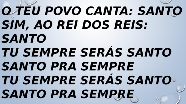 - O Teu povo canta: Santo Sim, ao Rei dos reis: Santo Tu sempre serás Santo Santo pra sempre Tu sempre serás Santo Santo pra sempre