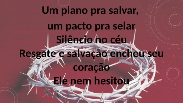 - Um plano pra salvar, um pacto pra selarSilêncio no céuResgate e salvação encheu seu coraçãoEle nem hesitou