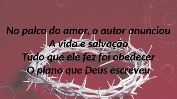 - No palco do amor, o autor anunciouA vida e salvaçãoTudo que ele fez foi obedecerO plano que Deus escreveu
