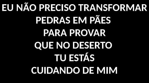 - EU NÃO PRECISO TRANSFORMARPEDRAS EM PÃES PARA PROVARQUE NO DESERTO TU ESTÁSCUIDANDO DE MIM