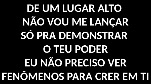 - DE UM LUGAR ALTO NÃO VOU ME LANÇARSÓ PRA DEMONSTRAR O TEU PODEREU NÃO PRECISO VER FENÔMENOS PARA CRER EM TI