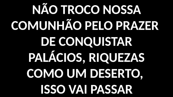 - NÃO TROCO NOSSA COMUNHÃO PELO PRAZER DE CONQUISTARPALÁCIOS, RIQUEZASCOMO UM DESERTO, ISSO VAI PASSAR