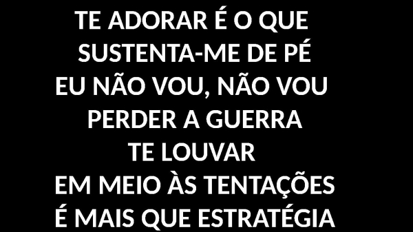 - TE ADORAR É O QUE SUSTENTA-ME DE PÉEU NÃO VOU, NÃO VOU PERDER A GUERRATE LOUVAR EM MEIO ÀS TENTAÇÕESÉ MAIS QUE ESTRATÉGIA