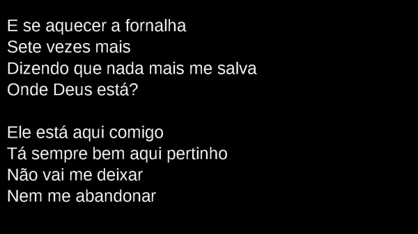 - E se aquecer a fornalhaSete vezes maisDizendo que nada mais me salvaOnde Deus está?Ele está aqui comigoTá sempre bem aqui pertinhoNão vai me deixarNem me abandonar