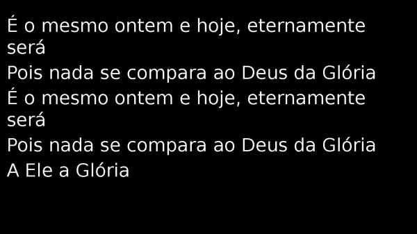 - É o mesmo ontem e hoje, eternamente seráPois nada se compara ao Deus da GlóriaÉ o mesmo ontem e hoje, eternamente seráPois nada se compara ao Deus da GlóriaA Ele a Glória