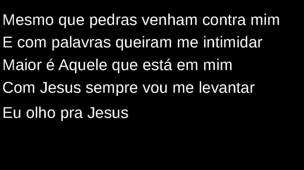 - Mesmo que pedras venham contra mimE com palavras queiram me intimidarMaior é Aquele que está em mimCom Jesus sempre vou me levantarEu olho pra Jesus