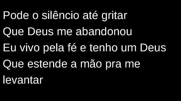 - Pode o silêncio até gritarQue Deus me abandonouEu vivo pela fé e tenho um DeusQue estende a mão pra me levantar