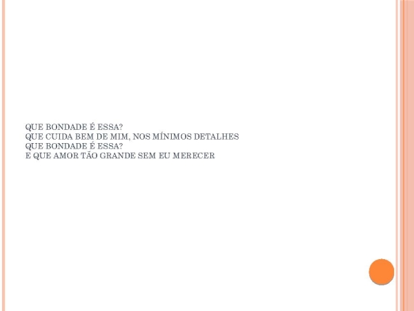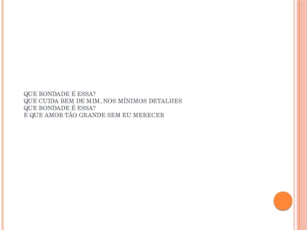 - Que bondade é essa?Que cuida bem de mim, nos mínimos detalhesQue bondade é essa?E que amor tão grande sem eu merecer