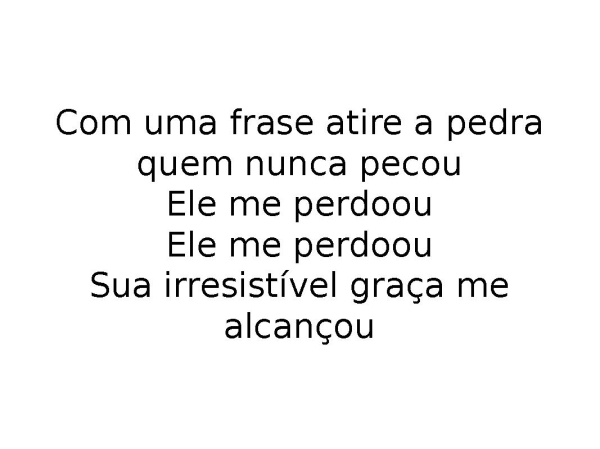- Com uma frase atire a pedra quem nunca pecouEle me perdoouEle me perdoouSua irresistível graça me alcançou