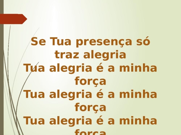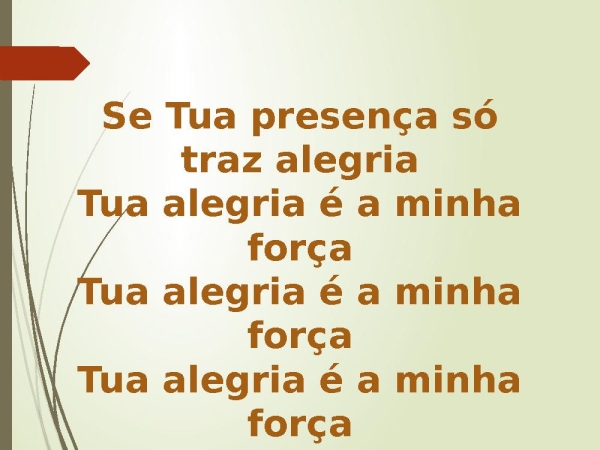- Se Tua presença só traz alegriaTua alegria é a minha forçaTua alegria é a minha forçaTua alegria é a minha força(2x)