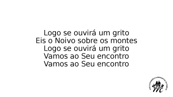 - Logo se ouvirá um gritoEis o Noivo sobre os montesLogo se ouvirá um gritoVamos ao Seu encontroVamos ao Seu encontro