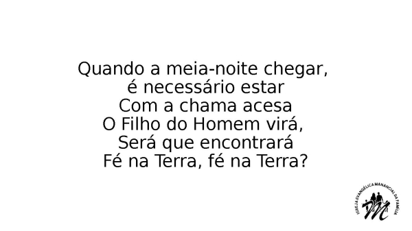 - Quando a meia-noite chegar, é necessário estarCom a chama acesaO Filho do Homem virá, Será que encontraráFé na Terra, fé na Terra?