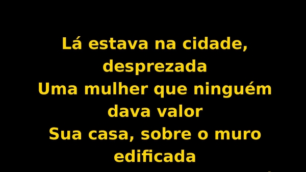 - Lá estava na cidade, desprezadaUma mulher que ninguém dava valorSua casa, sobre o muro edificadaNa cidade nomeada Jericó