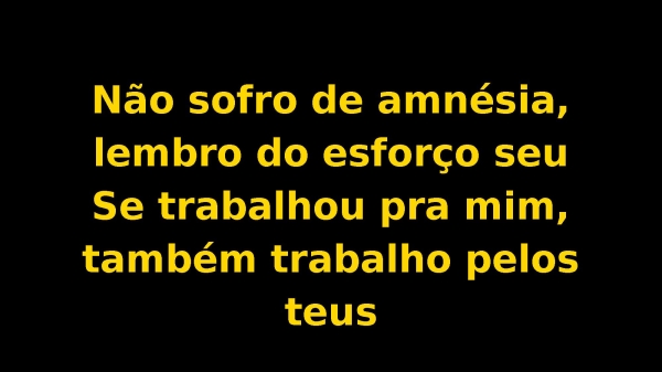- Não sofro de amnésia, lembro do esforço seuSe trabalhou pra mim, também trabalho pelos teus