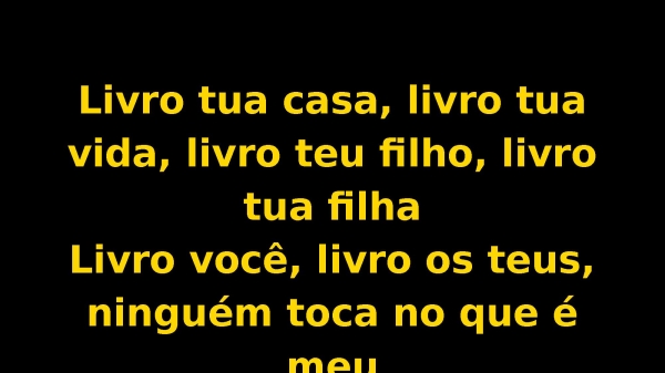 - Livro tua casa, livro tua vida, livro teu filho, livro tua filhaLivro você, livro os teus, ninguém toca no que é meu