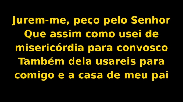 - Jurem-me, peço pelo SenhorQue assim como usei de misericórdia para convoscoTambém dela usareis para comigo e a casa de meu pai