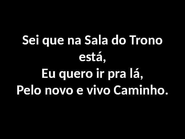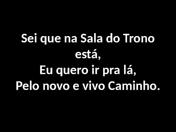 - Sei que na Sala do Trono está,Eu quero ir pra lá,Pelo novo e vivo Caminho.