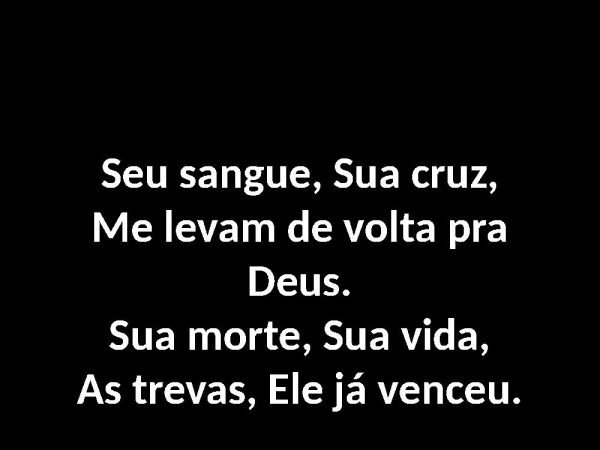 - Seu sangue, Sua cruz,Me levam de volta pra Deus.Sua morte, Sua vida,As trevas, Ele já venceu.