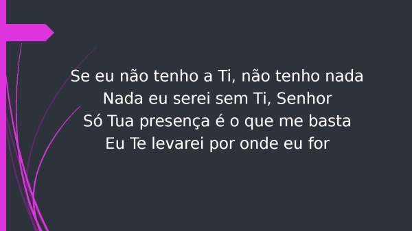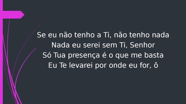 - Se eu não tenho a Ti, não tenho nadaNada eu serei sem Ti, SenhorSó Tua presença é o que me bastaEu Te levarei por onde eu for, ô