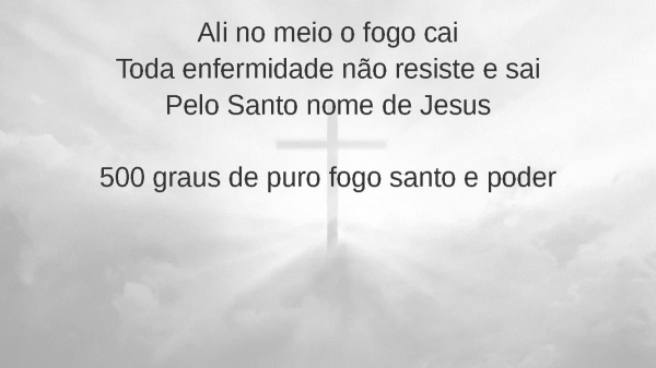 - Ali no meio o fogo caiToda enfermidade não resiste e saiPelo Santo nome de Jesus500 graus de puro fogo santo e poder