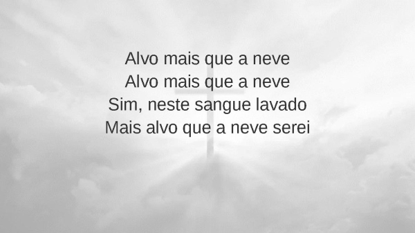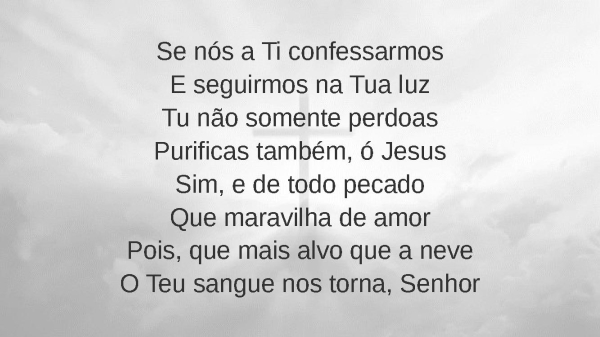 - Se nós a Ti confessarmosE seguirmos na Tua luzTu não somente perdoasPurificas também, ó JesusSim, e de todo pecadoQue maravilha de amorPois, que mais alvo que a neveO Teu sangue nos torna, Senhor