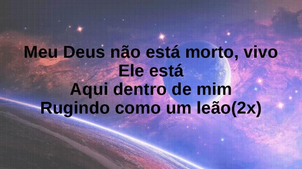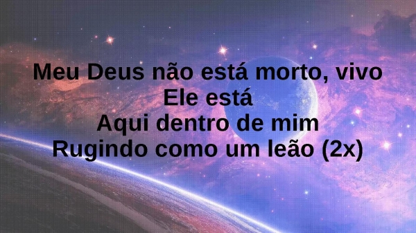 - Meu Deus não está morto, vivo Ele estáAqui dentro de mimRugindo como um leão(2x)