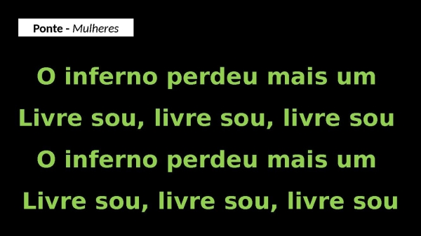 - O inferno perdeu mais um Livre sou, livre sou, livre sou O inferno perdeu mais um Livre sou, livre sou, livre souPonte - Mulheres