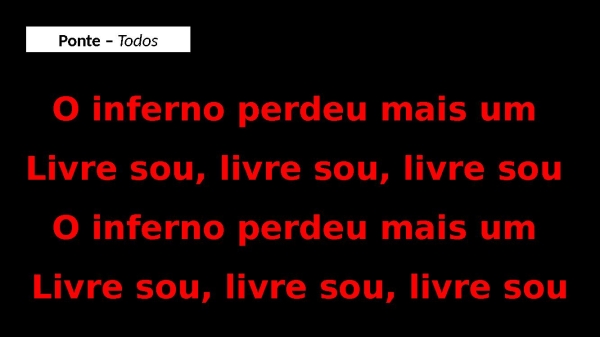 - O inferno perdeu mais um Livre sou, livre sou, livre sou O inferno perdeu mais um Livre sou, livre sou, livre souPonte – Todos