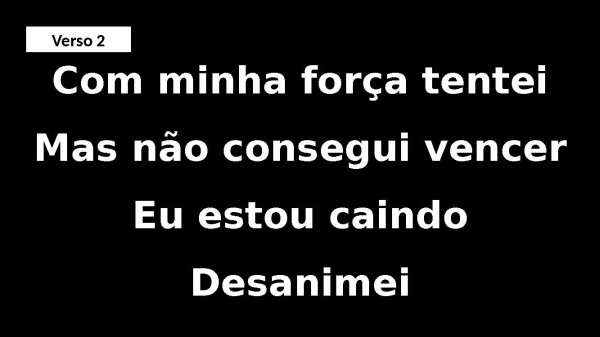 - Com minha força tenteiMas não consegui vencerEu estou caindoDesanimeiVerso 2