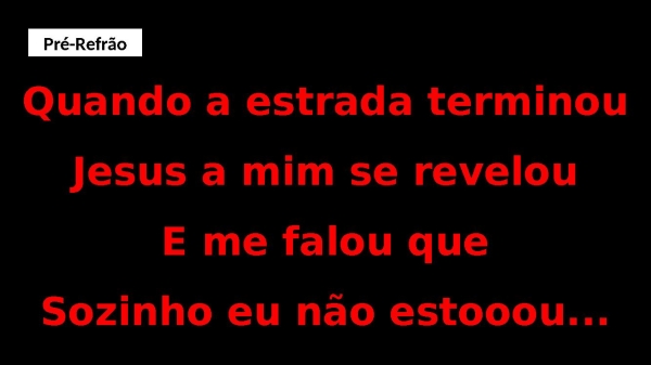 - Quando a estrada terminouJesus a mim se revelouE me falou queSozinho eu não estooou...Pré-Refrão