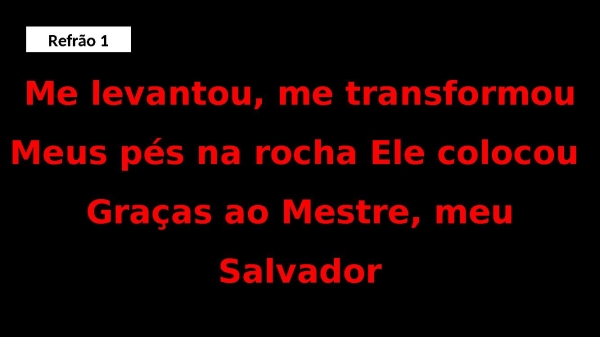 - Me levantou, me transformouMeus pés na rocha Ele colocou Graças ao Mestre, meu SalvadorRefrão 1