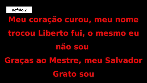 - Meu coração curou, meu nome trocou Liberto fui, o mesmo eu não sou Graças ao Mestre, meu SalvadorGrato souRefrão 2