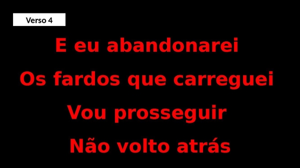 - E eu abandonarei Os fardos que carreguei Vou prosseguir Não volto atrásVerso 4