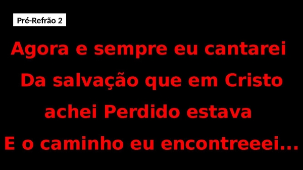 - Agora e sempre eu cantarei Da salvação que em Cristo achei Perdido estava E o caminho eu encontreeei...Pré-Refrão 2