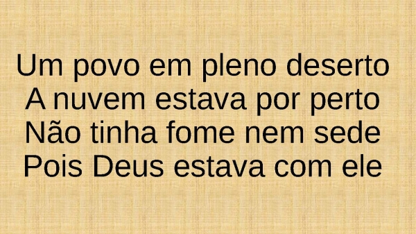 - Um povo em pleno desertoA nuvem estava por pertoNão tinha fome nem sedePois Deus estava com ele