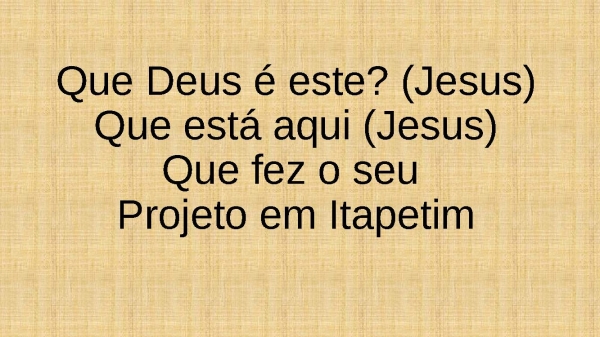 - Que Deus é este? (Jesus)Que está aqui (Jesus)Que fez o seu Projeto em Itapetim