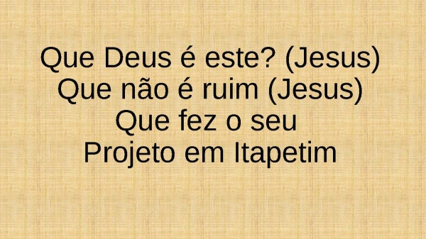 - Que Deus é este? (Jesus)Que não é ruim (Jesus)Que fez o seu Projeto em Itapetim
