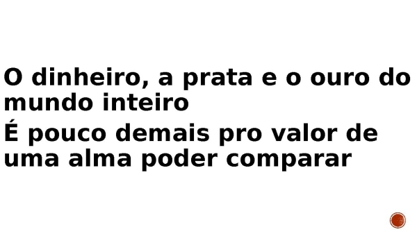 - O dinheiro, a prata e o ouro do mundo inteiro É pouco demais pro valor de uma alma poder comparar