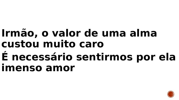- Irmão, o valor de uma alma custou muito caro É necessário sentirmos por ela imenso amor