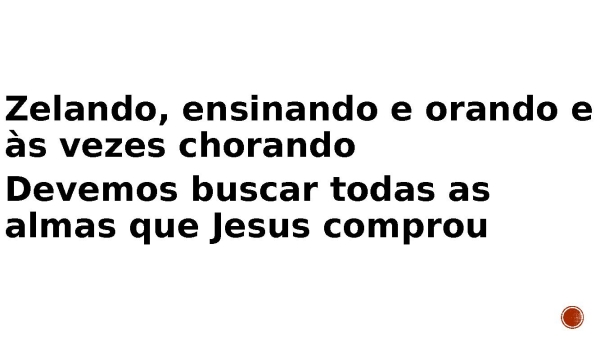- Zelando, ensinando e orando e às vezes chorando Devemos buscar todas as almas que Jesus comprou