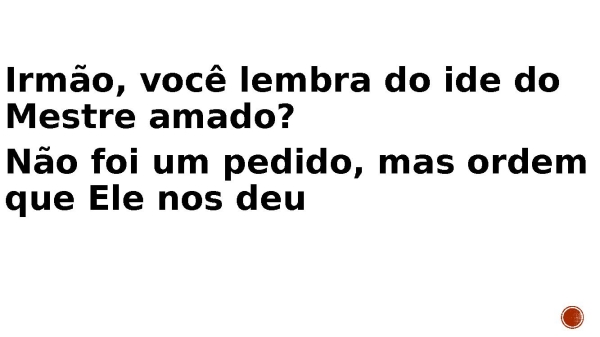 - Irmão, você lembra do ide do Mestre amado? Não foi um pedido, mas ordem que Ele nos deu